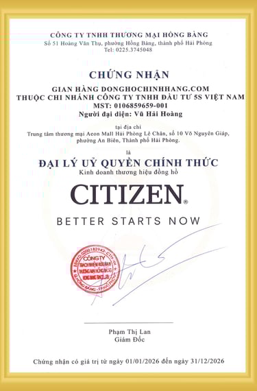 Donghochinhhang.com là đại lý ủy quyền chính thức của Citizen tại Việt Nam, mang đến sự lựa chọn đa dạng từ dòng thể thao Promaster đến Elegant cho nữ giới. Sản phẩm được bảo hành toàn cầu và luôn có sẵn linh kiện tại trung tâm dịch vụ ủy quyền.